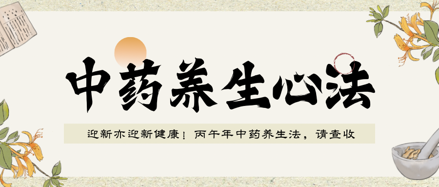 2026-01-27迎新亦迎新健康!丙午年中药养生法,请查收2026年为农历丙午年,按照《黄帝内经》五运六气理论,岁运特点为:丙辛化水,丙年为 “水运太过” 之年。全年水气偏盛,寒气较为明显。司天在泉:少阴君火司天,阳明燥金在泉。上半年火气主事,但是受水运太过的克制,容易出现寒包火、外寒内热的问题,气候冷热骤变;下半年燥金当令,雨水减少,干燥明显,与年运相合,气候干燥寒冷。 -